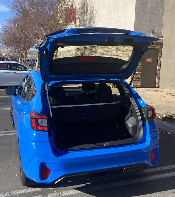 I call the style of the Impreza a mini-station wagon, others might call it a 5-door hatchback. Whatever you call it for its size it is versatile. There is 20.4 cubic feet of storage and 32." of floor length with the rear seats up. This expands to 56 cubic feet and 63.9" of length with the seats fold down. Yeah you can stow a lot of stuff back there.