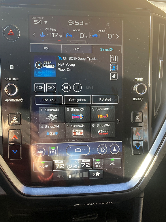 When I first got in the Impreza RS and saw the center screen I thought "Oh great another touch screen my fingers won't work on!" I was wrong; it is a soft touch - a little pressure and you can feel a "click". Thank you. And there were also knobs for the sound system.