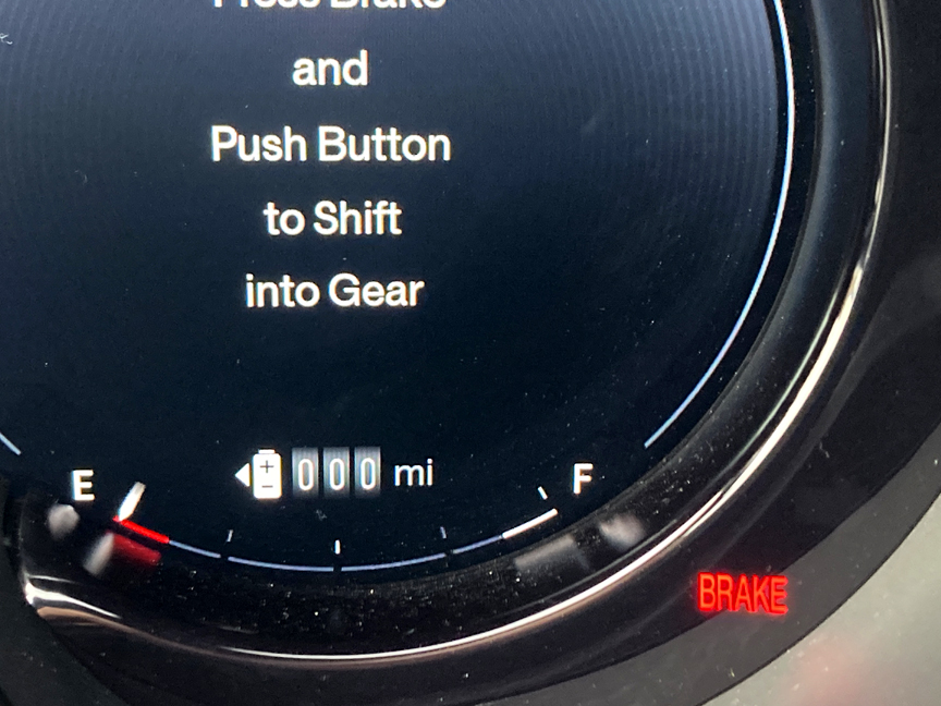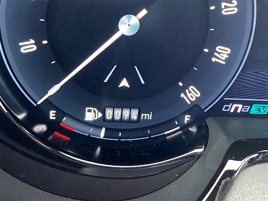 Another little confusing item is the fuel gauge, or gauges if you include battery power. The gas gauge is at the bottom of the speedometer. You can tell it's a gas gauge by the little gas pump.