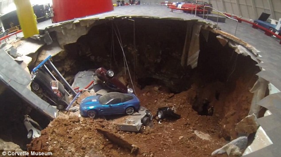 BOWLING GREEN, KY, February 12, 2024; On February 12, 2014, at 5:38 AM, the National Corvette Museum suffered a cave-in that claimed eight cars from the museum's multimillion dollar collection and caused an international sensation. The video and images captured by museum security cameras went viral, circulating around the globe. Viewers were left stunned at the loss of such rare and remarkable treasures, and all eyes were on the National Corvette Museum's response and recovery.