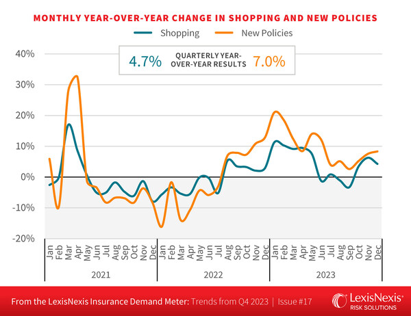 - U.S. auto insurance shopping and new policies posted positive year-over-year growth and record volumes for the final quarter of the year, both registering as 'Hot' on the LexisNexis® Insurance Demand Meter.