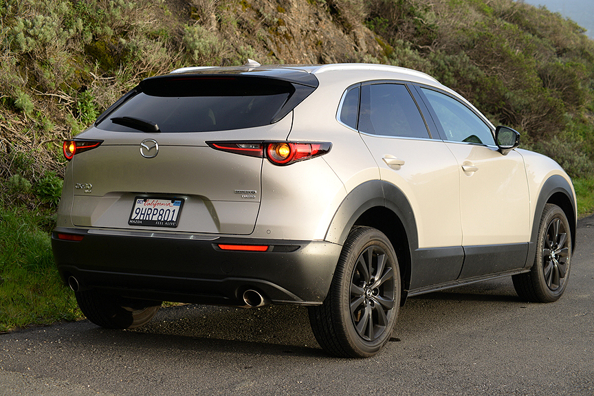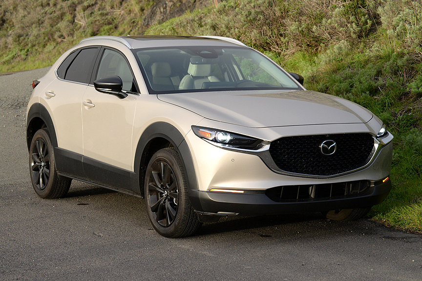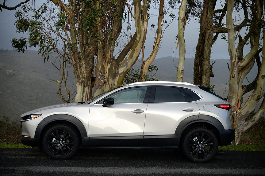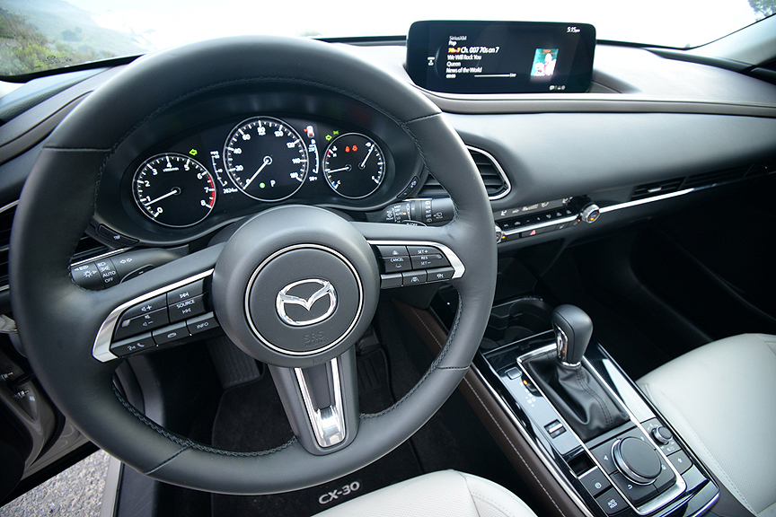 Later in the week, I got a chance to test the CX-30 on mostly dry pavement and once again reveled in its pinpoint accurate handling (Mazda calls it G-Vectoring Control) and vernier caliper precise steering feedback. Turbo boost spools up quick enough to keep the 2.5-liter four on full boil all the time. The CX-30 may look like an SUV, but it's really a Miata in drag, and those of you who are sports car enthusiasts will instantly recognize the CX-30 2.5 Turbo for its true potential.