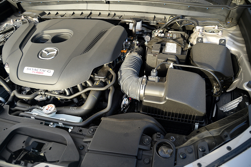 • ENGINE: Turbocharged and Intercooled SKYACTIVE 2.5 Liter inline-4, DOHC, 16-valve, aluminum block and head, direct fuel injection