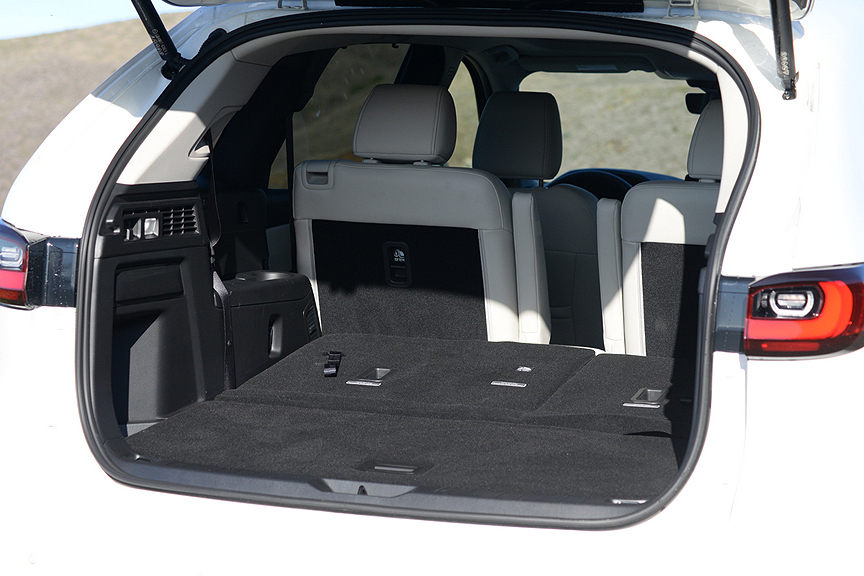 If you plan on towing a trailer, Mazda will prep your CX for that task for just $900 (hitch, harness, tow ball mount and brake controller). The CX-90 is tow-rated at 5,000 pounds, and with a torque output of 332lb.-ft., this big six is more than worthy of the task.