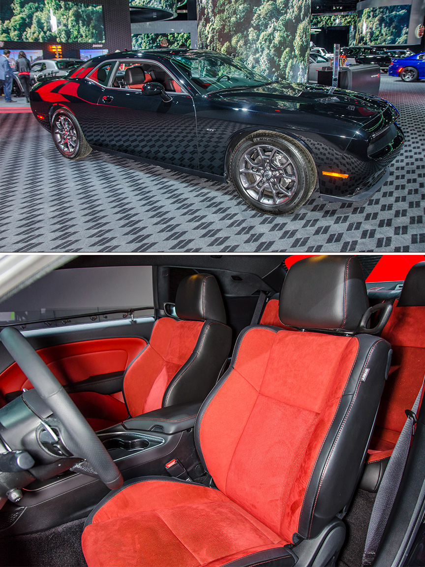 Not all manufacturers specify black Alcantara, Dodge has used color, as well as embroidery for effect.