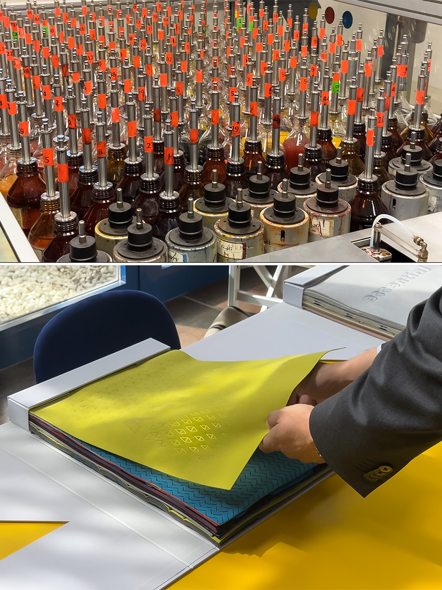 Fundamentally, Alcantara is a technical material, a class of man-made polyester-based materials. Unlike some others, the company is focused on using recycled and bio-based polymers as part of its sustainability efforts; the company has been Carbon Neutral since 2009.