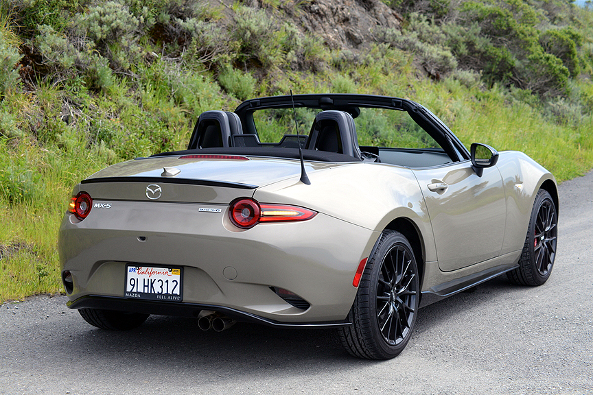 The current fourth model, tabbed ND, was introduced in 2015, and continues into a 9th year of refinement with 3 soft top convertibles and two retractable roof hardtops available. The soft tops start with the basic Sport version, which carries a base price of $30,170. This marks an increase of $995 over last year, making it the first time a base Miata has retailed for more than $30,000. More elaborately optioned convertibles are the Club, which we tested (base price $32,485), and the Grand Touring (base price $35,450). The retractable hard top models up the ante considerably, with prices ranging from $38,195 for the Grand Touring RF to $41,995 for the Club RF.