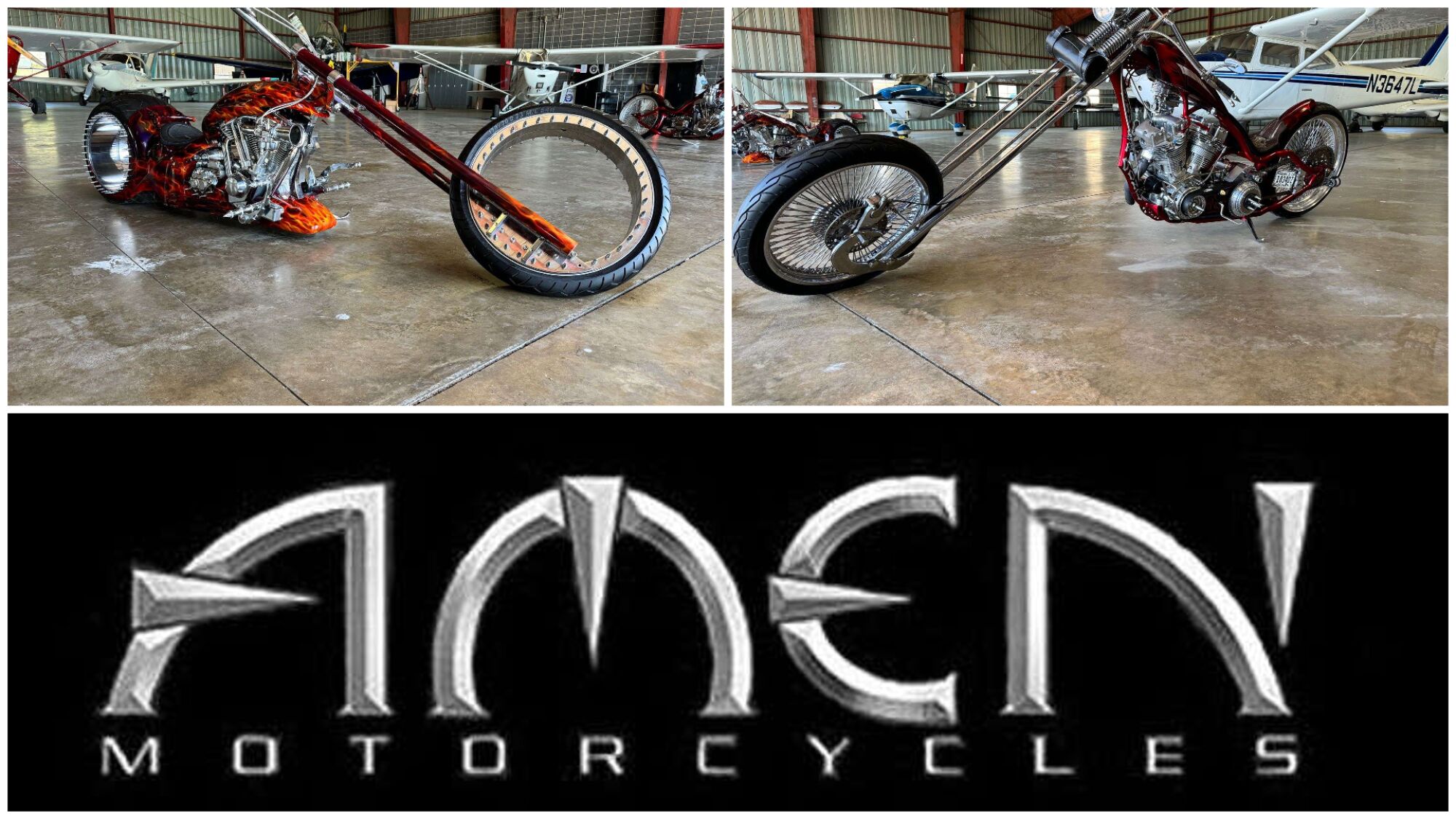 The Mike Brown / Amen built motorcycles include the never-before-seen Legacy Bike, the Hubless Monster, the Git Er Done Bike, the YHWH Bike, the Savior Bike, the Grandaddy Bike and many more two-and four-wheel creations. Some of the four-wheel creations are the Manta Mirage Project, Custom VW Bus Project, Supercharged Astro Van Project, Cabover Tractor Project and Mopar Chop Top Project to name a few.