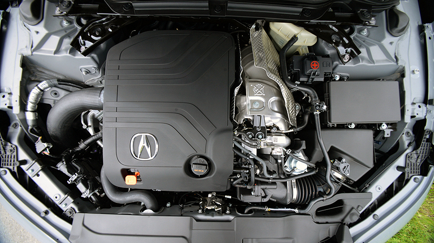 The adaptive sports dampers enable the driver of the Type S to choose from four driving modes unavailable on the base sedan: Comfort/Normal/Sport and Sport+. The latter, exclusive to the Type S, sharpens throttle response, holds gears (there are 10 of them) longer, and opens up exhaust outlet valves "for a satisfying engine note." The Type S also sports significantly improved body work and streamlining compared to the base model. Its lower front splitter generates added downforce, while the black, open surface diamond pentagon grill feeds more air to the engine compartment via an underhood alloy duct. The rear spoiler and lower diffuser work in consort to smooth exit airflow and reduce lift, and both of these aero-pieces are optionally available from Acura in carbon fiber.