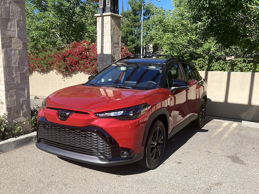 The Corolla Cross is available either as a hybrid or gas; the test Corolla Cross was a hybrid. In my opinion hybrids are a better option than pure electric. You can get terrific fuel economy (better around town) but you never have to plug-in. The 2024 Corolla Cross Hybrid is rated at 45-mpg city, and 38 on the highway. Darn good for an AWD vehicle.