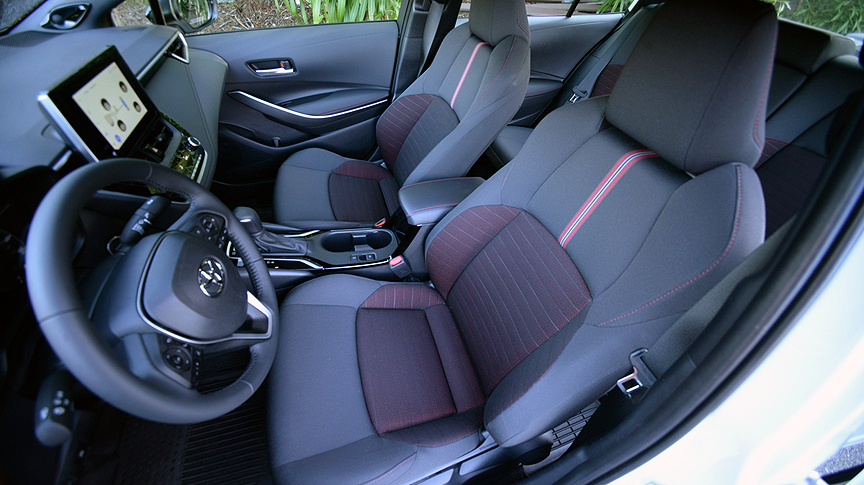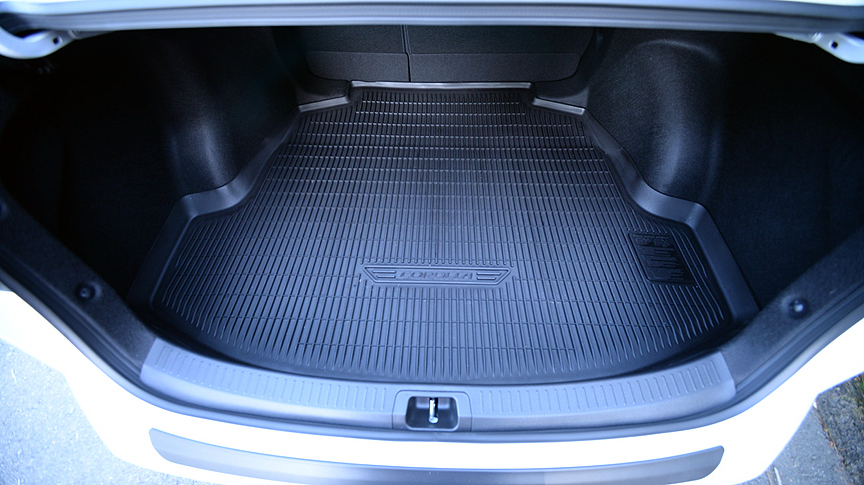 Helping bide time in our test car was an excellent $600 optional JBL Premium Audio which surrounded us with 9 speakers, 800 watts, and a subwoofer and amplifier. That made listening to SiriusXM (3 month free Platinum Trial Plan) all the more pleasurable. Our test Corolla also benefitted from a $530 Convenience package (heated, powered outside rearview mirrors with turn signal indicators) plus a very beneficial rear cross traffic alert. What a refreshing state of affairs it was to drive a small sedan like the Corolla where you can actually see all four corners of the car from the driver's seat. Instead of moving until your beeper system tells you to stop, you can actually see where you're going when maneuvering around a crowded parking lot. It's one of the many essential safety factors giant SUVs have eliminated from today's incapacitated driving repertoire.