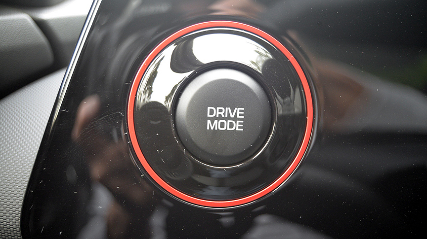 If you plumb Hyundai's website for the N Design, you'll encounter 18 bullet points extolling the many assets of this Elantra. But ironically enough, the single outstanding feature that distinguishes the N Design from any other sedan with sporting pretensions is not mentioned or identified, or even shown in a photo. That would be the deliciously oversize "SPORT" mode button affixed prominently to the face of the dash just to the left of the lovely leather-wrapped steering wheel. This brilliant location - something I have encountered in NO other sport sedan (including the Elantra N) allows you to get racy without fumbling around for the control/screen/haptic button to do so. Push the magic button here, and the dash instantly re-computes speedo and rev counter faces with red dials and bright red hash-marks. The dual clutch 7-speed is perfectly configured to maximize your driving enjoyment. The leather wrapped floor mounted stick is endowed with a manual gate as well as a fully automatic gate. The steering wheel paddles comply with your upshift and downshift instructions with immediacy no matter which gate you've selected. Managing the operation of this sedan is thus easy, rewarding and productive.