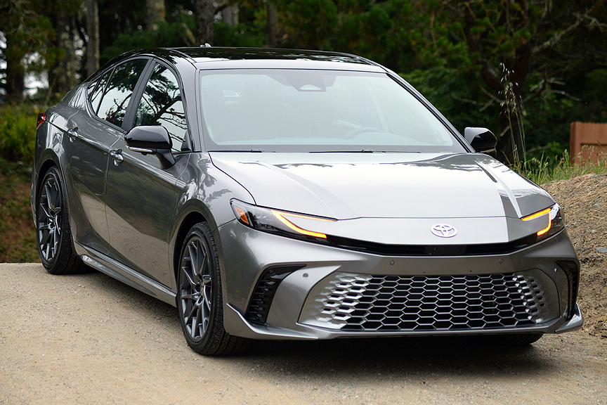 It's been 42 years since Toyota began production of the first generation Camry. Since 1982, nine generations of Toyota's best-selling passenger car (300,000 yearly) have been introduced to the USA, with the latest iteration being the substantially revised 2025 model XSE, which we recently tested. For the first time ever, this elegantly restyled four-door, five-passenger family mover is hybrid-powered only. Four grades are on offer: LE ($29,495), SE ($31,795), XLE ($34,495) and XSE ($35,695). In addition to the restyled exterior and interior, the big news lies under the hood, where the thumping V6 engine has been replaced by a pair of four-cylinder gas-fueled motors linked to Toyota's fifth-generation hybrid drivetrain.