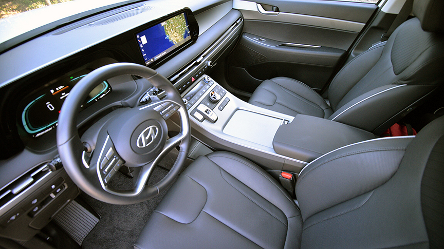 Note, however, that the relatively short sidewalls of the 50 series Hankooks magnify bumps and road imperfections. The overly firm spring rates Hyundai has chosen for the Palisade produce a choppy, bone-jarring ride no matter which setting you select from the multiple Drive Mode choices (Eco, Sport Smart). In order to minimize discomfort, we invariably chose Comfort Mode, but even in this softest of all possible configurations, we found ourselves often shaken, not stirred. After perusing the Owner's Manual, we discovered that if you chose the "Smart" Drive Mode, the Palisade will automatically reconfigure your Drive Mode "by judging the driver's driving habits (for example mild or dynamic) from the brake pedal depression or the steering wheel operation." But in Smart Mode, we were too Dumb to figure out where we stood with respect to the Palisade's AI ranking of our inputs.