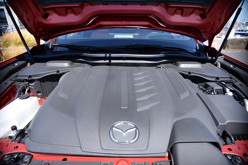 Wow! The most heart-warming sound I've heard in many months was the starter motor's whine as it lit off the strictly internal combustion engine of Mazda's new CX-70. No hybrid antics here. No EV silent treatment either. No wondering whether the damn thing was actually running or not. Just punch the big fat START button to cue the cranking symphony, and Mazda's all-new inline six-cylinder powerplant bursts into life. With the kind of perfect balance only a straight six can achieve, the CX-70's power unit idles reassuringly. But toe into the throttle hard, and this classic 3.3 liter six brings back memories of all the legendary Jaguars that depended on straight sixes for firepower.