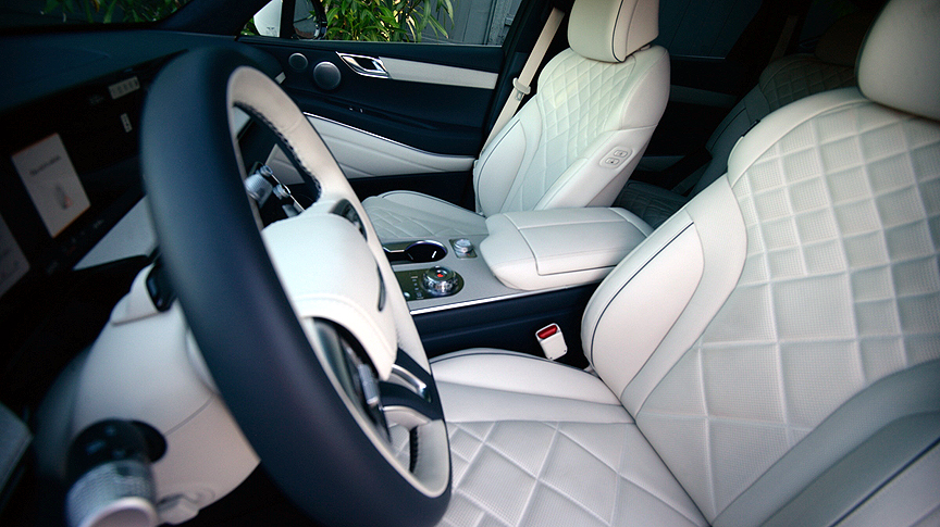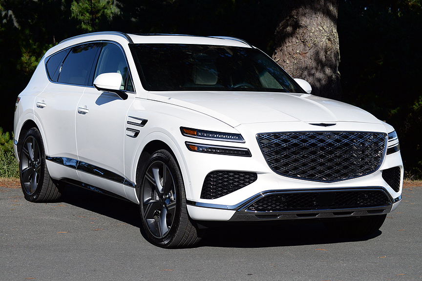 The GV80 represents such a radical departure from run-of-the-mill SUVs that its South Korean maker - Genesis - is rightfully deserving of its biblical corporate name. From the moment you appraise its sleek aerodynamic shape to the instant you climb aboard its presidentially appointed cabin, the Prestige level GV80 distinguishes itself from anything else on the road. Our test sample was finished in brilliant Uyuni White bodywork, with matching Nappa Leather interior in Glacier White (new for 2025). The cumulative effect of what Genesis calls "The Beauty of White Space" makes a resounding statement for visual simplicity. One look inside the elegant GV80 made me think of that classic Marty Robbins tune "A White Sport Coat," and left me searching for a Pink Carnation.