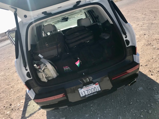 The Hyundai valet had her shined, fueled and ready to go when we arrived in Denver. She was parked next to a Land Rover with the same color and design scheme – black, white, and boxy. They looked like siblings. First impressions were of a dramatically-styled, generously-sized people hauler.