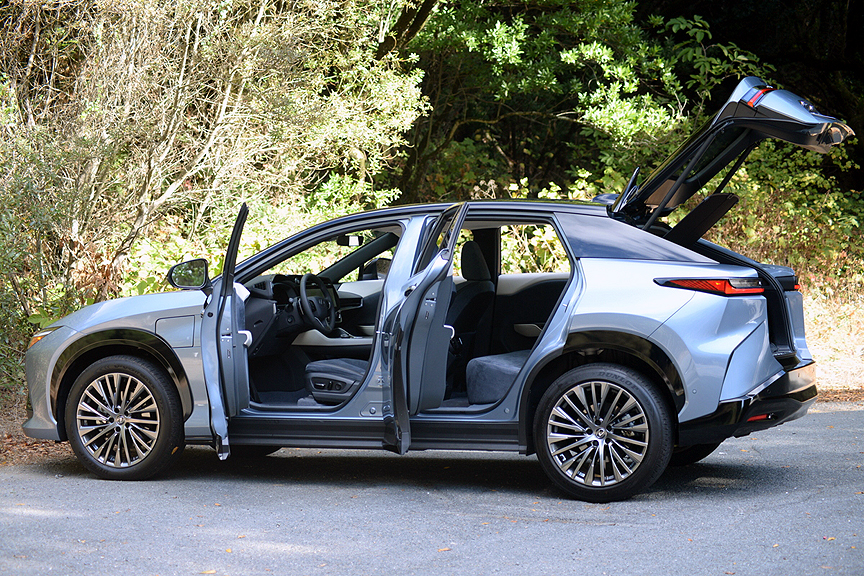 This Lexus, the company's second EV offering (after the 2023 RZ450e), shares its TNGA platform architecture with Toyota's bZ4x and Subaru's Solterra. The Toyota's base price is $42,000, while the Subaru starts at $44,995. If you want Lexus level luxury, however, your base price is $59,730 for the RZ 300e. Our test sample augmented the sticker with $200 for an Illuminated Front Badge, $550 for a Dynamic Sky Panorama Glass Roof, $1,200 for Black-Ether Metallic Bi-Tone Paint, $140 for a Carpet Cargo Mat, $325 for Side and Rear Puddle Lamps and $95 for Wheel Locks. Add in $1,150 for delivery, processing and handling fees, and you've got a $63,390 Lexus that costs $21,390 more than the base Toyota EV from which it is derived, and $18,395 more than Subaru's similarly related base Solterra.