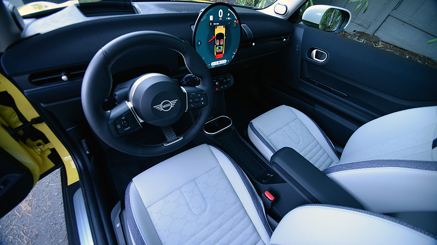 Now fast forward to the 2025 model I tested. From the outside, it looks pretty much like every Mini that's come before it, from the original Mark I of the Sixties to the reinvention of the brand by BMW in 2002. But let me steal a quote from Harry Met Sally, when she bumps into her old nemesis years after their first encounter and observes, "It's amazing! You look like a normal human being, but..." Well, the newest Mini looks amazingly like the old one, but..." The boxy silhouette hasn't changed, nor has the cramped interior, nor the brilliant handling of the chassis. That "but" refers to the re-prioritization of the Mini driving experience from "Let's Motor" to "Let's Not."