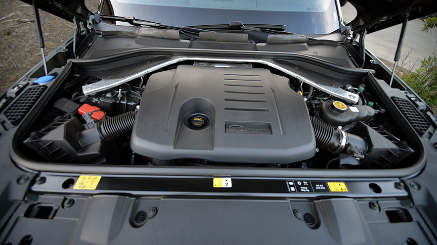 It's also damn fast in a straight line. Its 8-speed automatic gearbox can be manually controlled by using "Noble Polished Gearshift Paddles" but you rarely need resort to manual labor because the 3.0 liter supercharged, turbocharged, and intercooled inline-6 cylinder engine produces 395hp and 406lb.-ft. of torque. That's enough suds to scorch the standing start quarter mile in 14.2 seconds at 97mph and zip from zero to 60 mph in 5.5 seconds. Considering the Rangie weighs in at 5,932 pounds, that's stout straight line speed indeed. Top Speed is manufacturer estimated at 150 mph