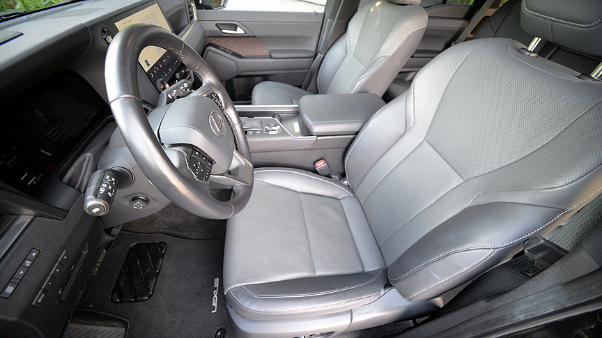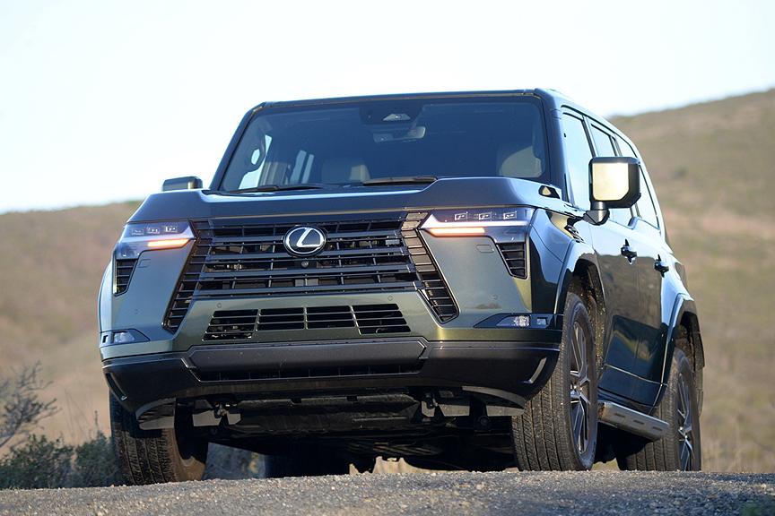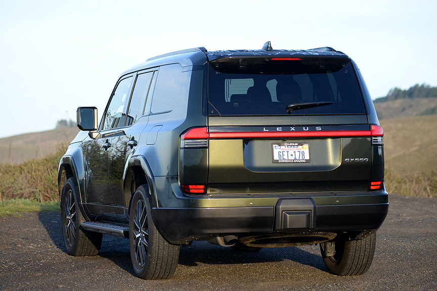 Lexus emphasizes the off-road competence of the GX 550, referring to its propulsion system as 4WD rather than AWD. Off-road bragging rights belong to the Overtrail models which utilize a soaring ride height of 9.84 inches to clear obstacles. That's 1 inch taller than all other GX variants. But make no mistake, the GX 550 Premium+ we drove isn't exactly sagging low in the saddle, since it requires a decisive high step up onto the running boards before gaining access to the cabin. All GX models share the exact same "GA-F" lightweight ladder frame platform that underpins the more expensive Lexus LX 600/Toyota Land Cruiser SUVs.