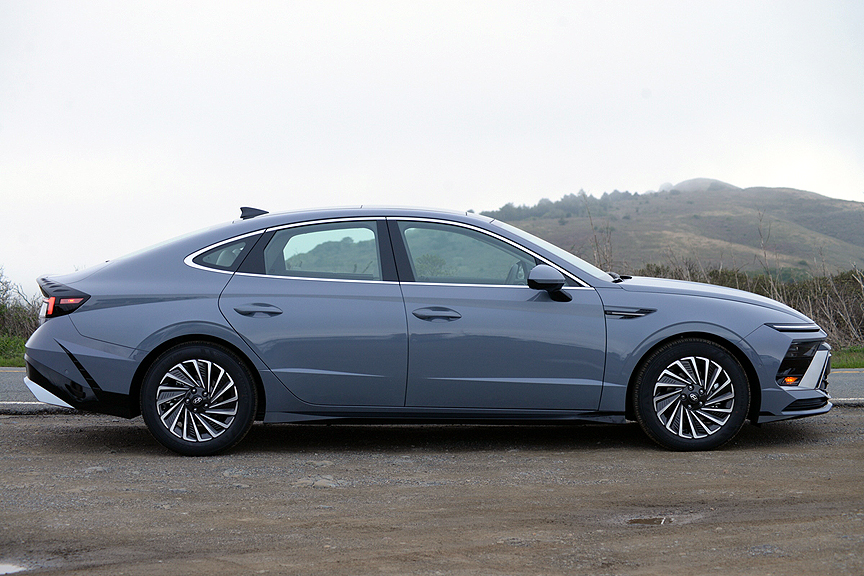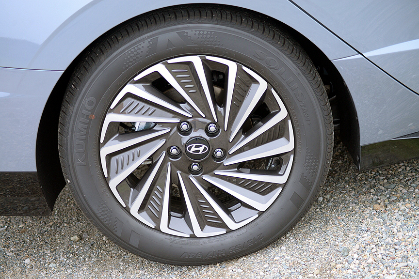 Hyundai equips this top-tier Sonata with dazzling 7J x 17-inch alloy rims that look like pinwheels. They're shod with 215/55R17 Kumho Solus TA 31 all-season radials (TW 500) which provide an excellent combination of grip and ride comfort. While we never pressed them hard enough to lose grip, these tires offered a surprising ability to damp ruts and potholes while sticking to the asphalt when dive-bombing apexes. With its well-configured driving environment, long list of luxury enhancements, and stupendous touring range, the 2025 Hyundai Sonata Limited Hybrid is one of your best choices in the medium-size sedan range. While it will never match the race bred N Sport version of the Sonata for track chops, the hybrid offers daily practicality and comfort the super sport N model is incapable of achieving.