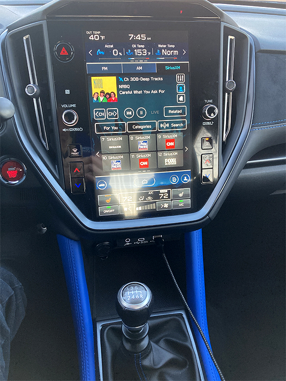A manual transmission, a 6-speed, is the transmission of choice for true believers. For you folks that aren't sure what the left pedal is for there is the "Lineartronic CVT Subaru Performance Transmission." Maybe I've adapted but I think 6-speed manuals have become much better, easier to operate. The clutch action was smooth, and the shifter slotted into every gear with no vagueness.