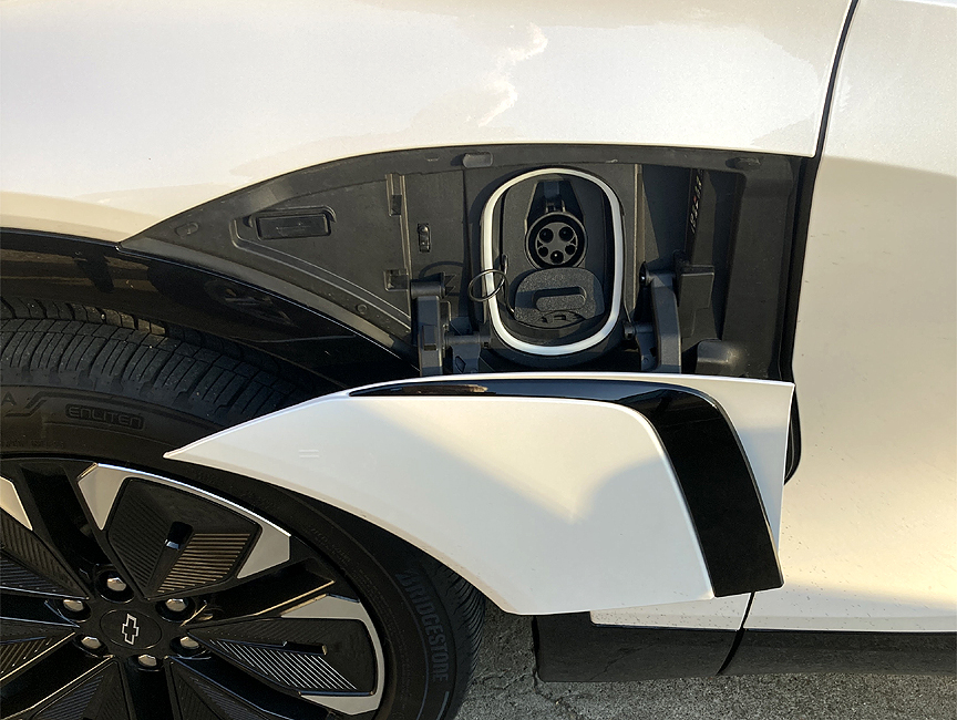 Some of you older folks may remember cars of the '50s and '60s and their hidden fuel fillers. Some were hidden behind license plates, others behind tail-lights. Well the charging port of the Blazer EV is hidden - I had to get out the manual to find it.