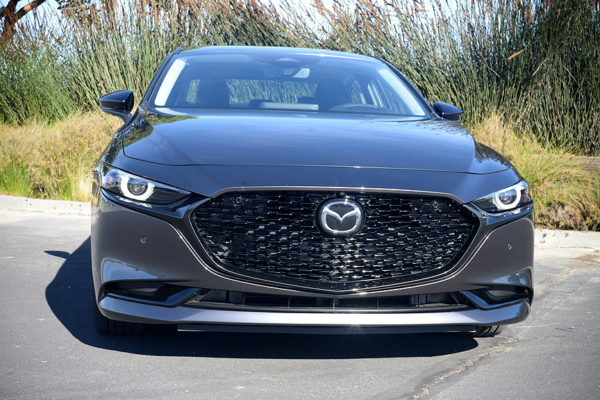 The first time I tromped the go pedal, I was pleasantly surprised to discover that the turbo four has a baritone voice of its own, an exhaust note that has been dutifully eliminated by the Aural Police from virtually everything else on sale today. Thankfully not the Mazda3, which confirms your application of throttle with a provocative blatting chortle. On Premium (91 Octane) fuel the turbocharged, intercooled, all aluminum, 16-valve straight 4 pumps out 250hp at 5000rpm and 320lb.-ft. of torque at just 2500rpm. Those numbers may seem modest, but they prove useful in such a svelte sedan. You end up with a frisky power-to-weight ratio of 12.38 lb/hp. Not surprisingly, that computation leads to outstanding acceleration from 0-60mph (5.6 seconds) and through the standing start quarter mile ( 14.1 seconds @ 99mph).