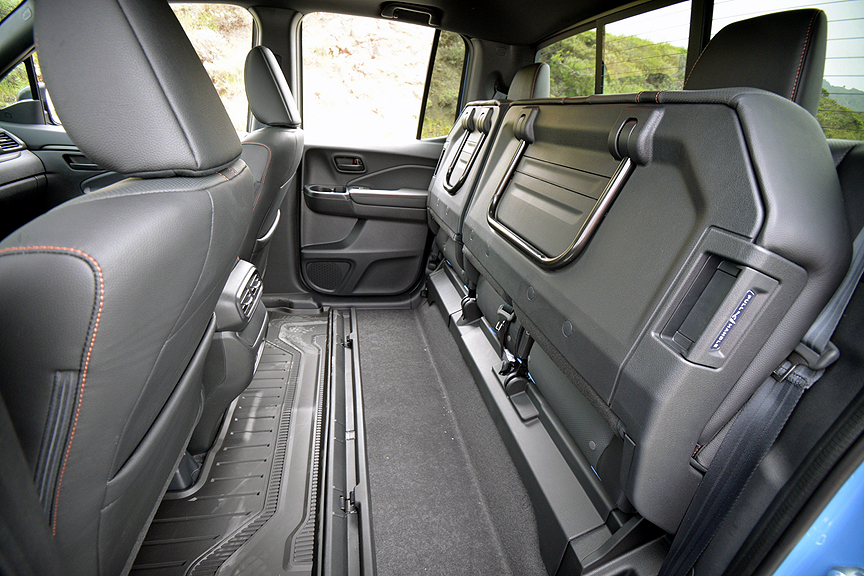 However, one of the nicest advantages of owning a Ridgeline is you don't even need that roof rack for the bike, because a full-size bicycle will fit inside the cab provided you fold and lock both rear seats up. The Ridgeline is a winner in so many ways, that the Trailsport deserves to be named The Honda Army Knife.