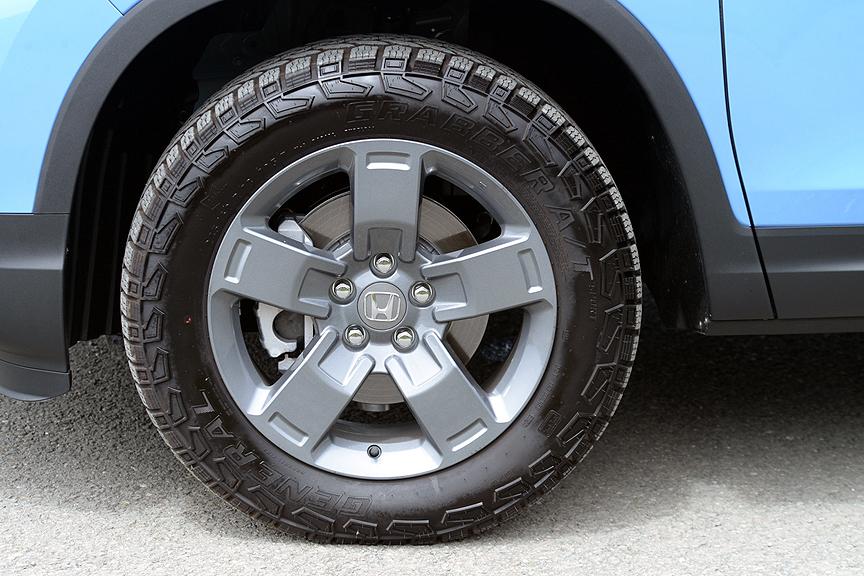 In particular, I would opt for the specially upgraded suspension package that comes standard on the new Trailsport model, which retails for $46,830. Honda upgraded the Trailsport's spring rates, re-valved the shocks, and installed beefier anti-roll bars to handle off-road performance challenges. These improvements help the Trailsport strafe apexes on paved roads as well. Furthering the stick is a set of model-specific five-spoke silver 18 x 8J alloy rims mounting General Grabber A/T 245/60R18 radials carrying a durable TW 500 rating. The combination of the upgraded suspension, beefy radial rubber, and the Ridgeline's comparatively low center of gravity (same 71-inch height as a Pilot) makes for a willing back roads dance partner.