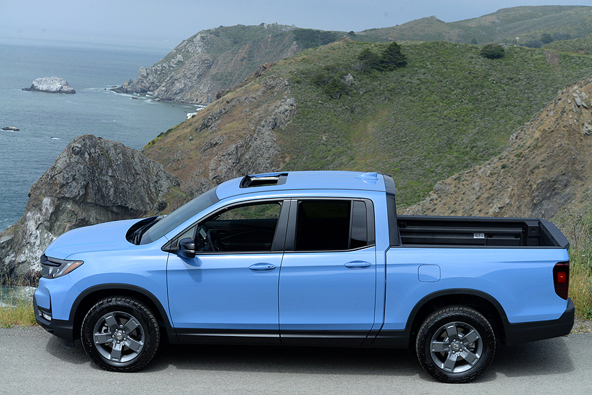 So the Ridgeline provides most of the workday assets pickup buyers require - including a 5,000lb. tow rating. But it does so without subjecting them to the comfort and operating drawbacks of truck ownership. Ridgeline never inflicts the ride discomfort or handling incompetency common to virtually every other pickup on the market today. So kiss off the jouncing, bouncy ride that live rear axle pickups inflict on you, because Ridgeline's fully independent front and rear suspension system is virtually impervious to road imperfections. 97 switchback turns on a two lane road separate my house from anywhere, so it doesn't take long to determine whether a vehicle has competent handling chops. 20 turns into my first Ridgeline drive convinced me that if I need a pickup, the Ridgeline is the one I'd buy.