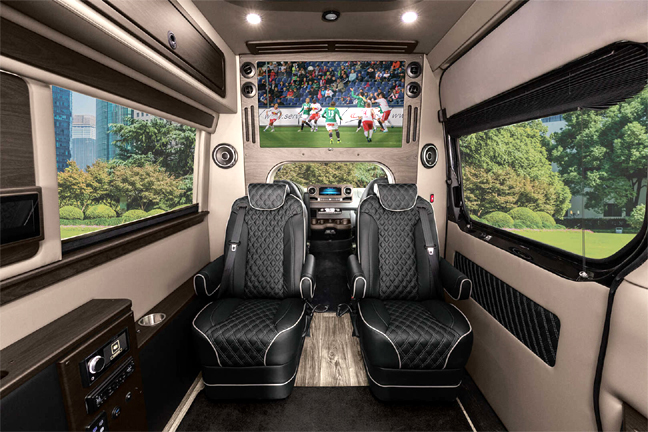 Despite its luxurious accommodations, the Luxe Cruiser doesn’t compromise on driving performance. Powered by a 2.0L high-output diesel engine paired with a 9-speed automatic transmission, it offers smooth, confident power delivery. The standard all-wheel-drive system ensures stability and control across a variety of terrains, while features like a backup camera and optional 4-camera system make maneuvering this large van surprisingly stress-free.