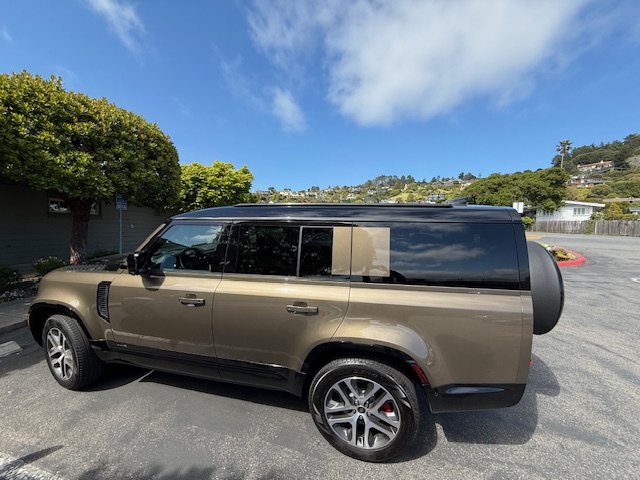 But before you buy a Defender you really have to study, may at the local dealer because otherwise you will never figure out whether you should have two doors, four doors, extended wheel base and size of the engine as well as the size of your bank account. For most folks the 110 X-Dynamic seems to make the most sense. 20 inch aluminum wheels, a decent sound system an excellent digital gauge display.
