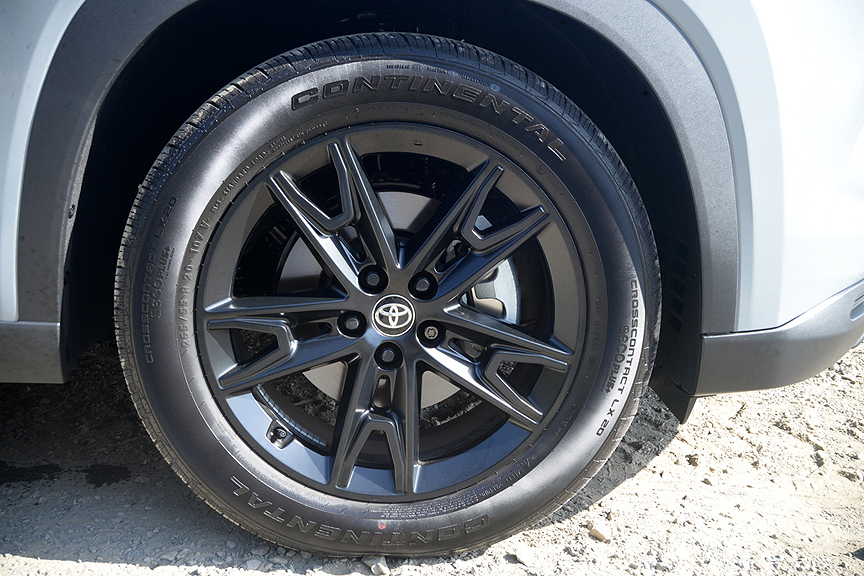 New for 2025 is the addition of a Nightshade Hybrid version, which utilizes blacked-out door handles, badges, mirror caps, and rear spoiler to provide an understated stealth look. Our test vehicle was painted "Cement," a newly available Nightshade color this year. Model-specific black 20 x 8J alloy rims mount Continental 255/55R20 ContiContact all-season radials (TW 680). Viewed from the side, the flat roofline and blackened roof rails minimize the 70 inch height of this SUV, What you can't see from ground level is the complex, optional ($1,350) Panoramic Roof which opens the otherwise somber black leather-trimmed interior to a world of light and fresh air.