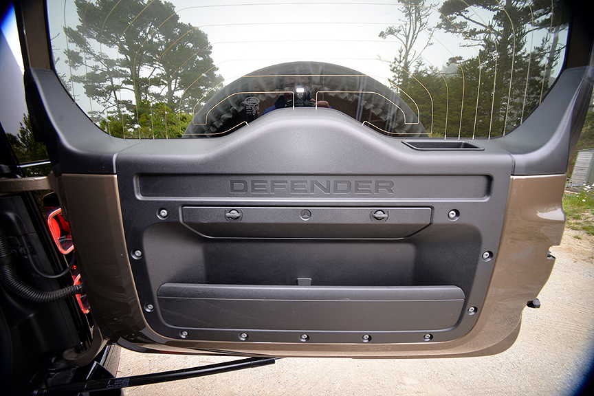You wouldn't be wrong if you called the Defender's stylistic motif a screw job. I counted no fewer than 64 exposed Allen wrench cap nuts fastening all 5 interior door panels to their respective frames. You can add a 65th for the glovebox door, and probably a couple more that escaped my attention. This plethora of nifty hardware evokes Land Rover's agrarian origins. The Defender's unique design motif pays tribute to Rover's storied farm and battle exploits, making you feel like you're driving a significant piece of automotive history.