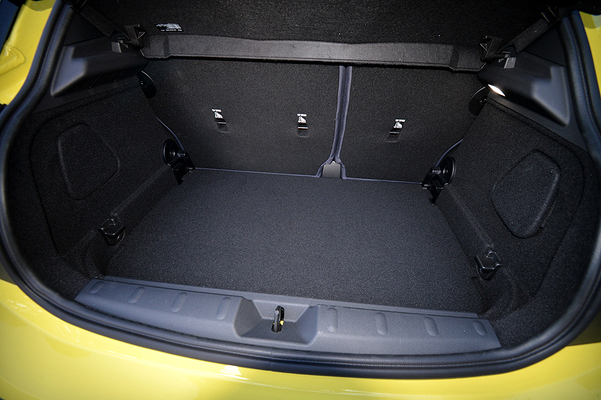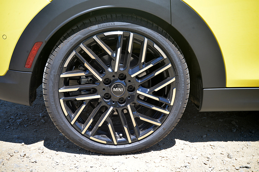 The MINI's responsiveness is a product of a finely tuned suspension system abetted by a killer set of street legal, autocross-worthy tires. BMW engineers have perfected the MINI's relatively prosaic MacPherson strut front/ multi-link rear underpinnings with spring rates and shock tuning that shine on switchback terrain. Handling adhesion at each contact patch is maximized by a set of legendary Pirelli Cinturato P7 radials, diminutive in size (215/40R18), but abundant in grip, with a race-worthy treadwear rating of TW 320.
