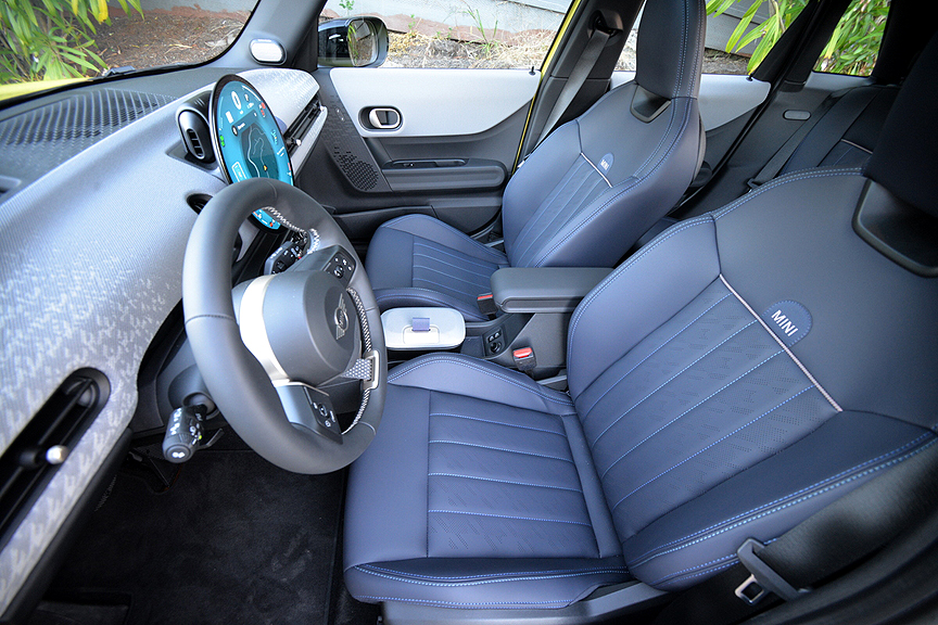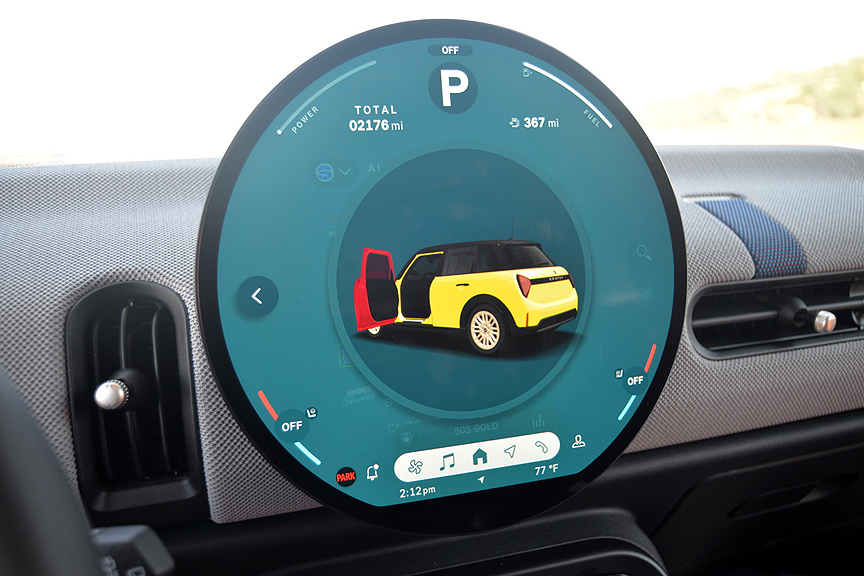 If there's one abiding beef I have with the latest MINI, it can be found front and center on the dash panel. MINI has chosen to eliminate all but a handful of physical switches in favor of a 9.4 inch diameter circular OLED touchscreen. Other than turning the ignition on and off, selecting a gear, or activating the emergency flashers, you are forced to deal with the huge circular screen for almost everything else. I'm not sure what lack of logic led to this dire situation, but it really put a damper on my enjoyment of this car.