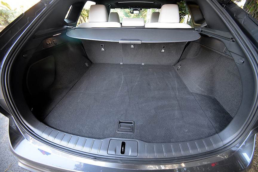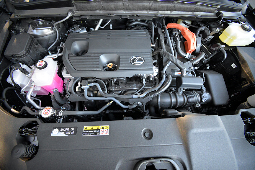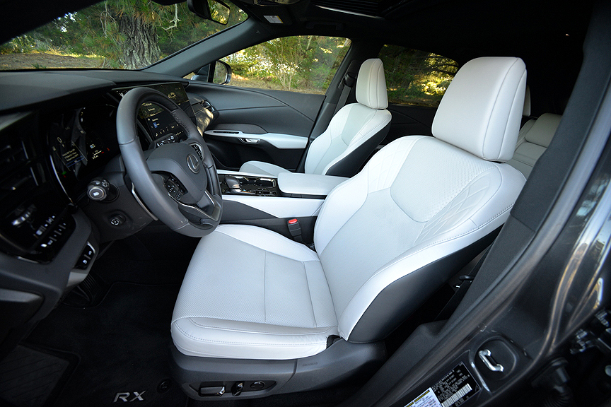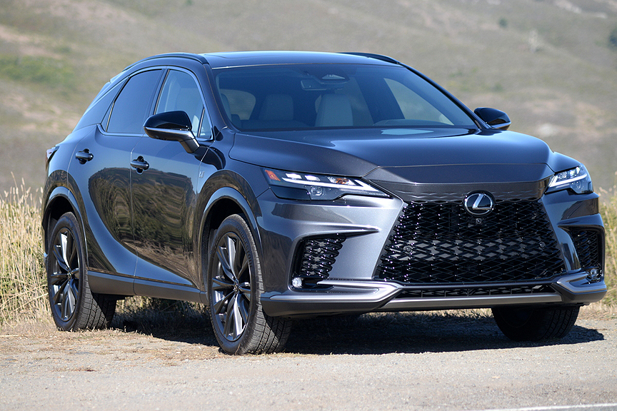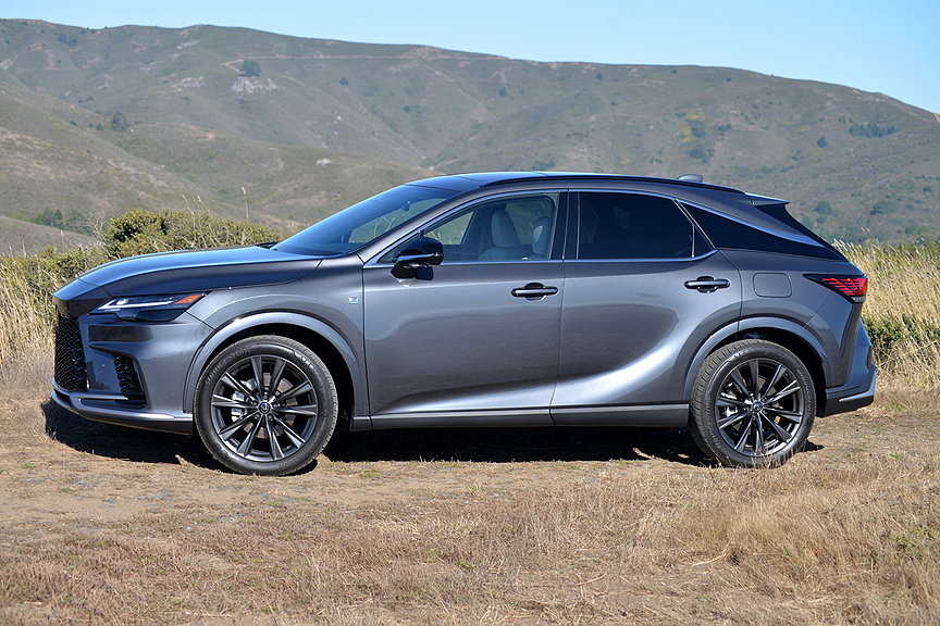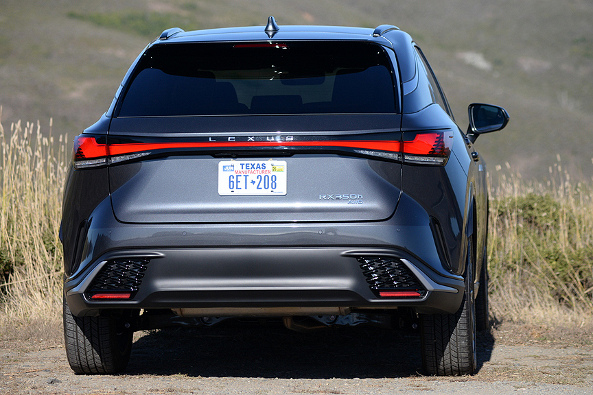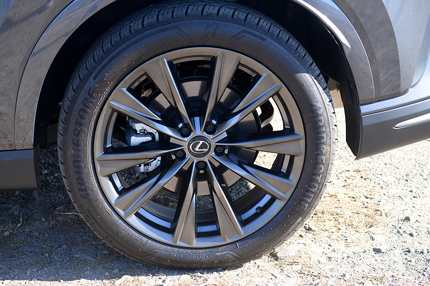 But today, the F Sport designation has been watered down from its original hardcore track-based definition. Now Lexus divides the F Sport banner into three subgroups: F Sport Handling, F Sport Performance, and F Sport Design. While Handling and Performance improvements still hew close to the original racing ideal, the "F Sport Design Features" on our test Lexus RX350h consisted of the following mostly cosmetic upgrades: "21-inch Alloy Wheels, F Sport Design Exterior Styling, Power Moonroof with Roof Rails, Nu-Luxe Trimmed Heated & Ventilated Power Front Seats with Driver Seat Memory, Wood and Leather-Trimmed Heated Steering Wheel, and Wireless Phone Charger." As you can deduce from that list, with the possible exception of upsized 21-inch Alloy Wheels (shod with 235/50R21 Bridgestone Alenza Sport A/S Enliten radials), the hybrid's F Sport Design Features enhance comfort and style rather than performance.