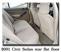 There's more room throughout -- in both the coupe and sedan. In the Sedan, the increased volume is noticeably different and the most obvious increase in space involves the rear seat legroom. In keeping with Katsunori Mori's goal of maximizing passenger volume, Honda overhauled the Civics' suspension system. In the front, space saving MacPherson struts provide increased tire contact, which in turn, provided better handling. The rear has a refined double wishbone system that adds to the increased the trunk space, premium ride, and the "flat floor" rear seats. Because the new rear suspension was more compact than its predecessor, the design allowed the engineers to move the exhaust "pre-chamber" all the way back to the rear area, instead of the standard cabin floor location, thus leaving a "tunnel-less" bottom. More rear legroom and a cleaner look is the result. Now, sitting in the middle will no longer force your passengers to suffer the embarrassing "knee-knocking-spread-legs" or the uncomfortable "knees-to-the-chin" position.