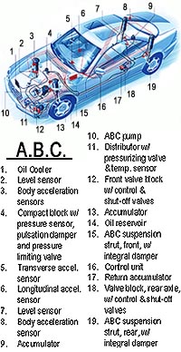 ESP stands for Electronic Stability Program, which takes control of the car when it senses that the driver has lost control – even before the driver realizes his or her error. In the case of under steer or over steer, sensors trigger the system to apply break pressure to one wheel, either on the inside rear or outside front, thus correcting the situation. Now, the absolute latest technology is the ABC suspension system. Active Body Control basically reduces the whiplash effect caused by cornering, braking and accelerating. Every ten milliseconds, the thirteen sensors that monitor the vehicle's body movement report to a computer, which then immediately begins to take action in balancing the car. According to Mercedes Benz the result is a reduction in body roll by 68% in average situations, and 95% when the driver chooses the sports handling mode.