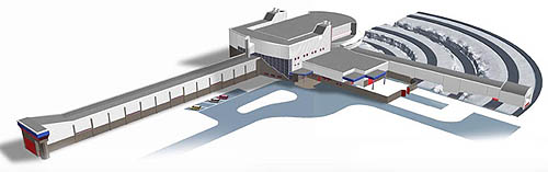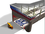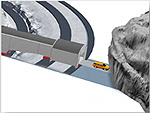 | The first of its kind, the new high-tech crash barrier is fitted with piezo-electric sensors that measure the impact from both the front and the side of a corner. Meaning, as the vehicle is "wrapped around" an angle, sensors read the vehicle's reaction from all angles. In addition, twelve compressed air cushions located beneath the block enable the barrier to be moved to accommodate any angle desired for testing. | |