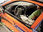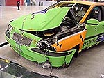 It wasn't a comfortable sight. The vehicles were mangled and the crash test dummies were left hanging in their seatbelts. Blue "lipstick" and green "mascara" marks were left on the S80's already deflated airbags, various windows were blown out, and body panels were buckled. The cars looked totaled.