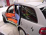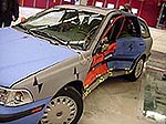 Once the various elements of a vehicle have been individually tested and re-tested, then tested together and re-tested, the construction of a physical prototype is built and the set-up begins. While maximum capacity estimates that 200 vehicle crashes will be performed each year, the average set-up time for each accident is approximately one week --not including evaluations and lab time.