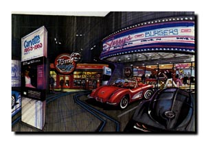 The area devoted to the 1950s, '60s and '70s appeal to those of us who fondly remember drive-in diners, the birth of rock and roll, and the hot new sports car that fired the American imagination! This picturesque panorama of the changing American scene elicit an appreciation of the significant influence the Corvette has exercised over other vehicles.Breaking the Mold