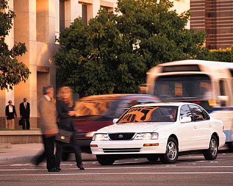 Avalon is powered y a 3.0-liter V-6 that drives the front wheels through a four-speed automatic transmission. It has a four-wheel independent suspension and four-wheel disc brakes, so the Avalon is like a four by four by four. And it has driver and passengers front air bags, ABS and side impact beams to keep it in line with all the latest safety regulations.