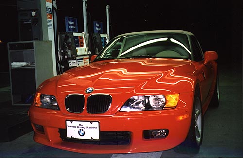 Later on we also had a chance to take the car down to Stinson Beach and were amazed by the sheer power, the acceleration and the road holding. Full credit to the soft-top. El Nino gave it a severe test and it passed with flying colors-there was not one drop of rain in the car after an 8-hour downpour. For the record the engine has a 189 horsepower 2.8-liter engine which will enable the car to reach 60 miles per hour in just 6.3 seconds. In case you, like Ray the UPS man, cannot tell the difference between the 1.9 and the 2.8 at first glance let me give you some clues. The 2.8 have a wider rear flank, twin exhaust tips, deeper front spoiler and round-spoke alloy wheels. All in all a very nice car, well-made sports car which is a genuine rival of both the Mercedes SLK and the Porsche Boxster.