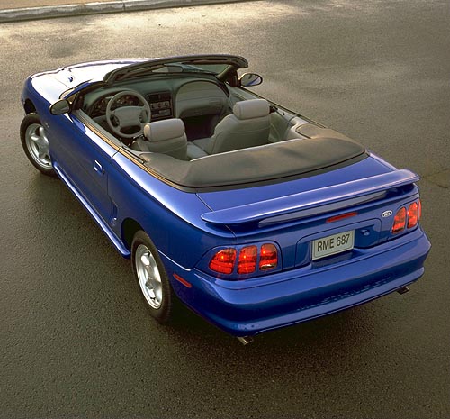 BOB - Ironically, the front-drive Ford Probe V6 sports coupe that was supposed to be the replacement for the Mustang when it came out in '89 is being phased out next year, while the 32 year-old traditional front-engine, solid rear axle Mustang soldiers on towards the next century. Some things never change and in this case, it's for the better. I hope Ford keeps making the Mustang convertible as it is for a long time to come. It's as much fun to drive today as it was to drive that old-timer that your brother had.