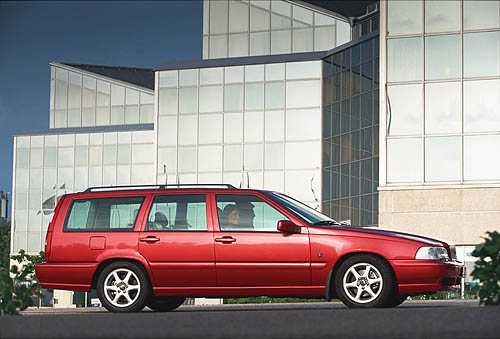 MATT - There's a lot of creature-comforts and other amenities in this Volvo too, Dad. The front seats are heated, and so are the outside mirrors. The driver's seat is adjustable eight ways and it has three memory positions so that the drivers in an average family don't have to re-adjust everything when they slip behind the wheel. There's a power system available as an option for the passenger's seat, too. The headlights have washers and wipers to keep them free from ice and road sludge and the headlights are daytime runners. The remote door lock opens just the driver's door with one click and the other doors are unlocked with a second click. The roof rack side rails are permanent, but the cross rails are removable. The tilt-and-telescoping steering wheel is standard equipment and so are the 15-inch alloy wheels and all- weather tires. There's even a fog light in the rear which would help other cars see you from a distance in the fog. At 3700 pounds, the V70 Cross-Country is no lightweight, but it has a Volvo-approved towing capacity of 3300 pounds, so I guess that it's up to the job.