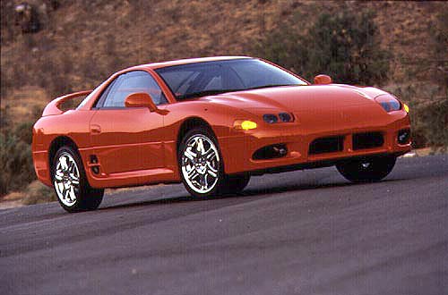 MATT - The new 3000 GT is technically about as far from its ancient Mitsubishi ancestors as it can get, Dad, especially the VR-4 version we're reviewing this week. It's as meek and mild as a Samurai warrior in full regalia and as anemic as a Sumo wrestler. Last year it lost its pop-up headlights to a set of projector-beam exposed head lamps that give the car an even more aggressive posture. It has a spoiler on its tail that's high enough to use as a clothes line, and its 18-inch chrome-plated wheels make it look like its poised to make a drag strip launch even when its standing still. Over the past couple of years, sports cars have become a dying breed, but Mitsubishi has hung in there with its performance coupes. And with the upcomimg departure of the other Japanese muscle cars, the field is narrowing even more.